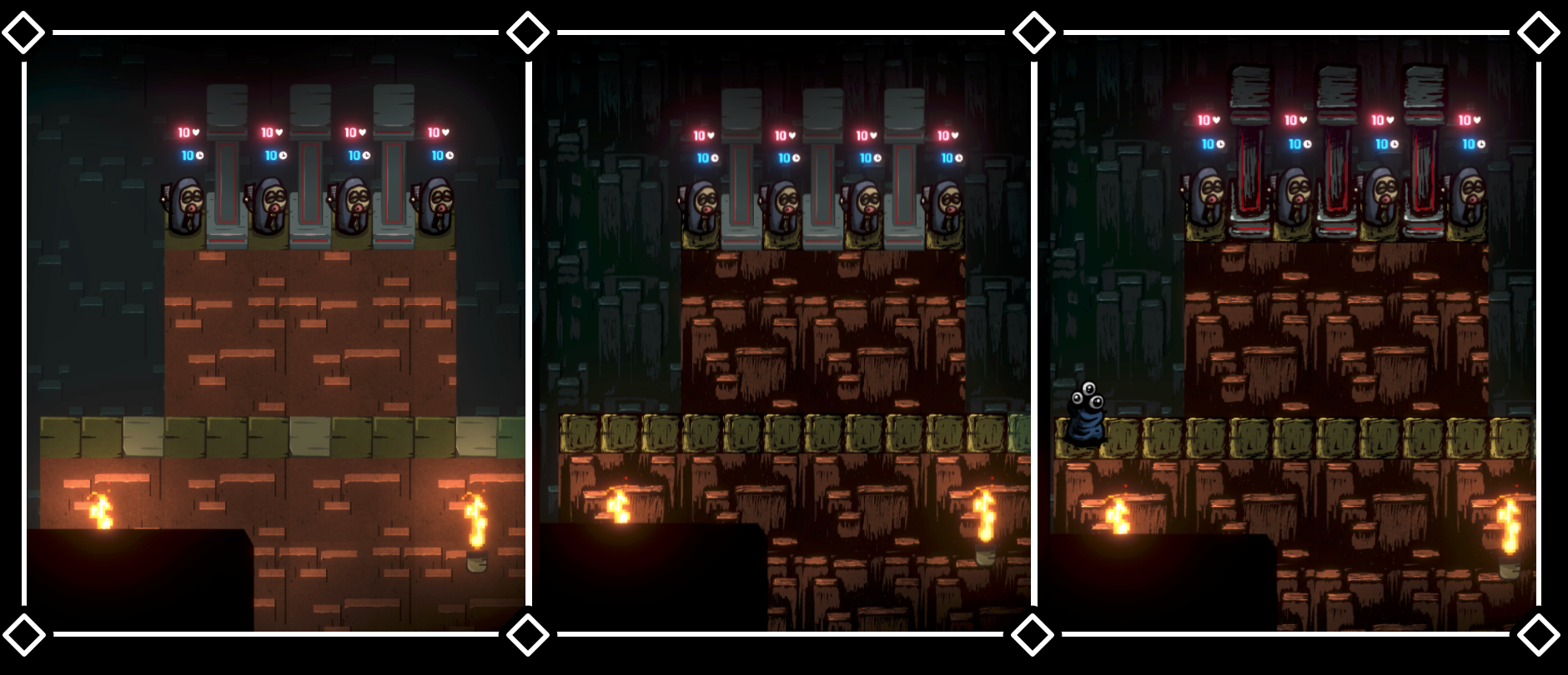 At first, the plan was to make a sort of dungeon crawler game that operates on turns. The graphics style and character details were not decided at all during that time; there existed only an quickly coded prototype with some placeholder assets.